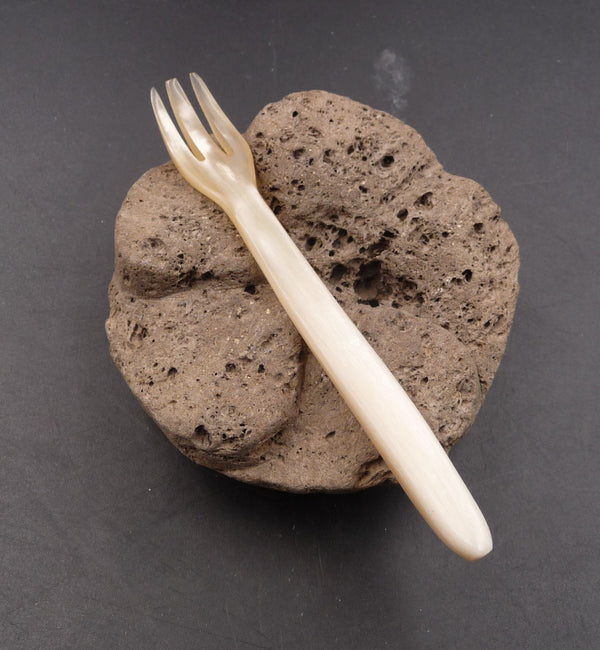 Petite fourchette en corne de zébu bio en provenance de Madagascar.