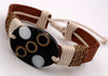 Bracelet unisexe en cuir, nacre, rotin et bambou.