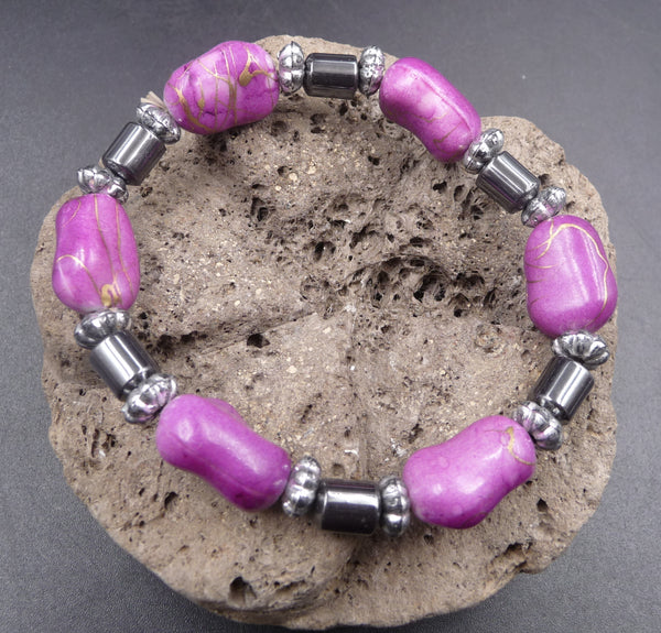 Bracelet composé de belles perles violettes en verre de Murano et de perles en hématite.