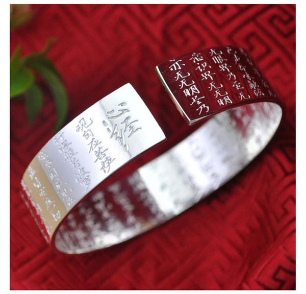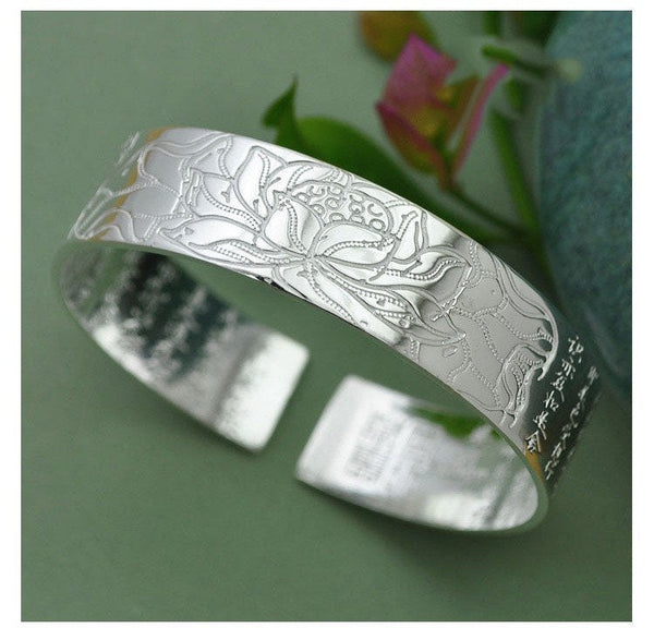 Bracelet Tibétain "Sutra du Lotus" en Argent.