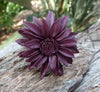 Bague fleur marguerite en cuir lie de vin taille réglable