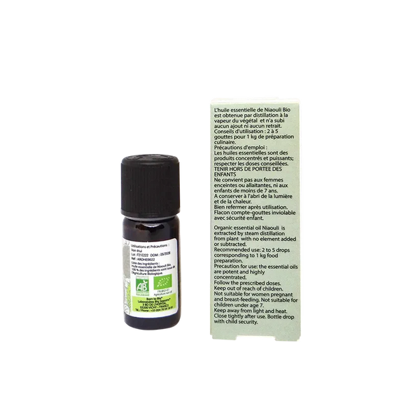 Huile essentielle de Niaouli bio, au parfum frais et camphré, obtenue par distillation à la vapeur des feuilles.